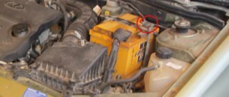 - Необходимо отключить аккумулятор, сняв провод с клеммы «—»